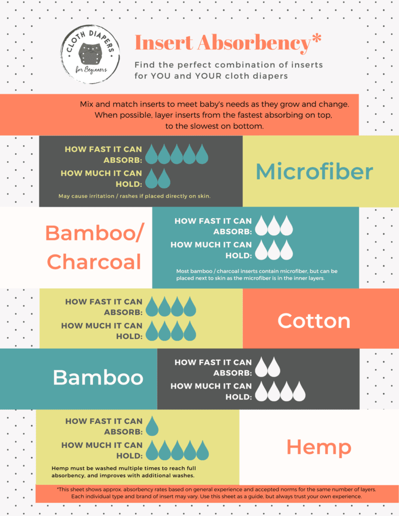 Of course, it will only tell you that if you know how the different diaper insert materials work, so let’s take a look at each insert material you’ll find when you’re looking to purchase diaper inserts and break down how it will perform: