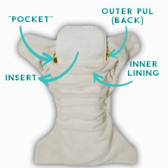 To use a pocket diaper, simply choose some inserts, stuff them into the ‘pocket” and then put the diaper on your baby just like you would a disposable diaper.