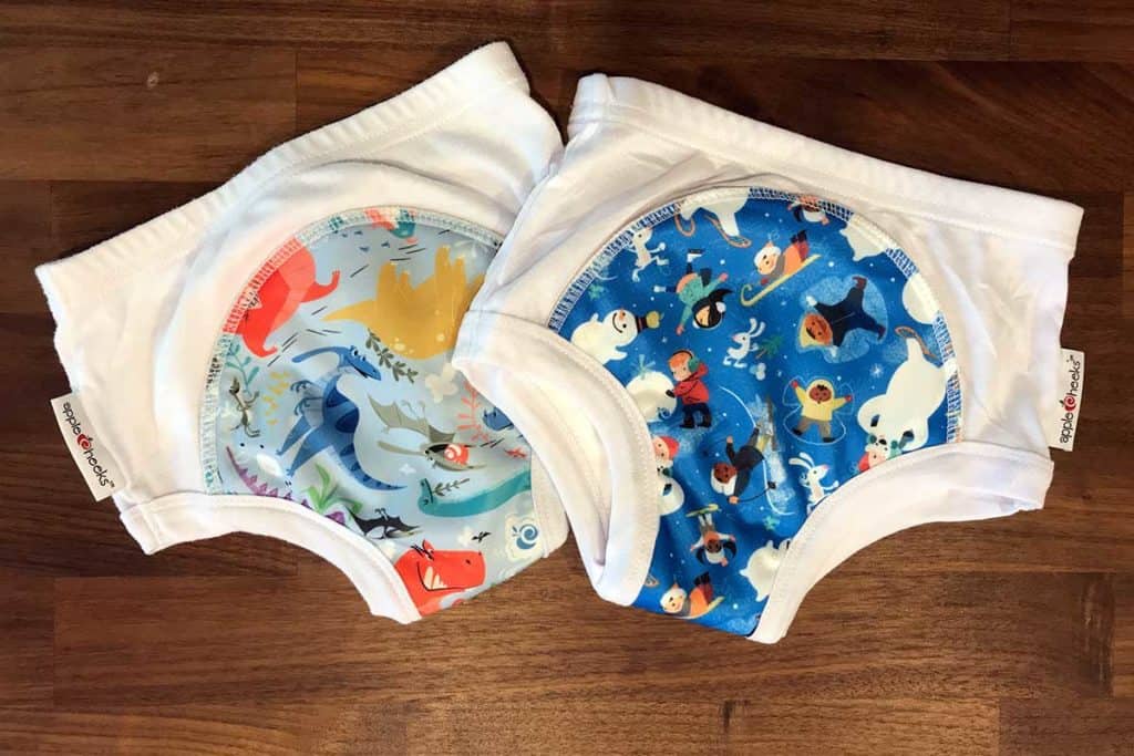 For daytime training pants, I currently (2022) recommend Thirsties training pants (read my Thirsties training pants review here), and for night time I HIGHLY recommend Mother Ease Bedwetting pants (read my Mother Ease bedwetting pants review here).
