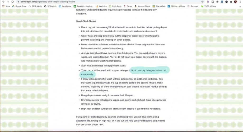 As we talked about above, most of the resources online about cloth diaper laundry contradict each other and are based on opinion. So how do you know what’s good information? Look for sources. Look for links to research, detergent websites, and expert opinions (not other blogs!).