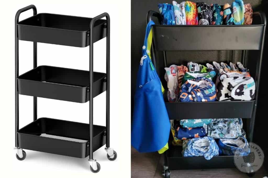 You don’t have to spend a lot of time in the cloth diaper community to find someone who uses one of these rolling carts for their cloth diaper stash, they are just too darn practical! You can just roll it to where you need it, and do a diaper change right there!