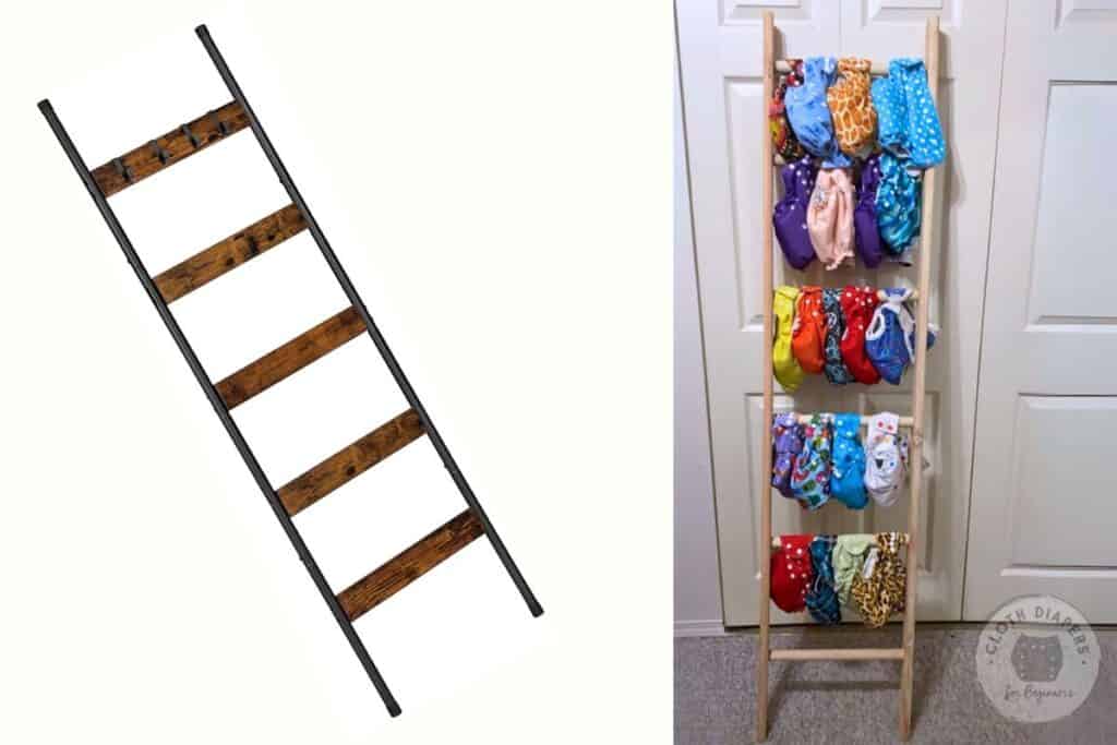 I absolutely love the simplicity of using a blanket ladder to store your cloth diaper collection. It’s low-profile, low-cost, and high-impact!