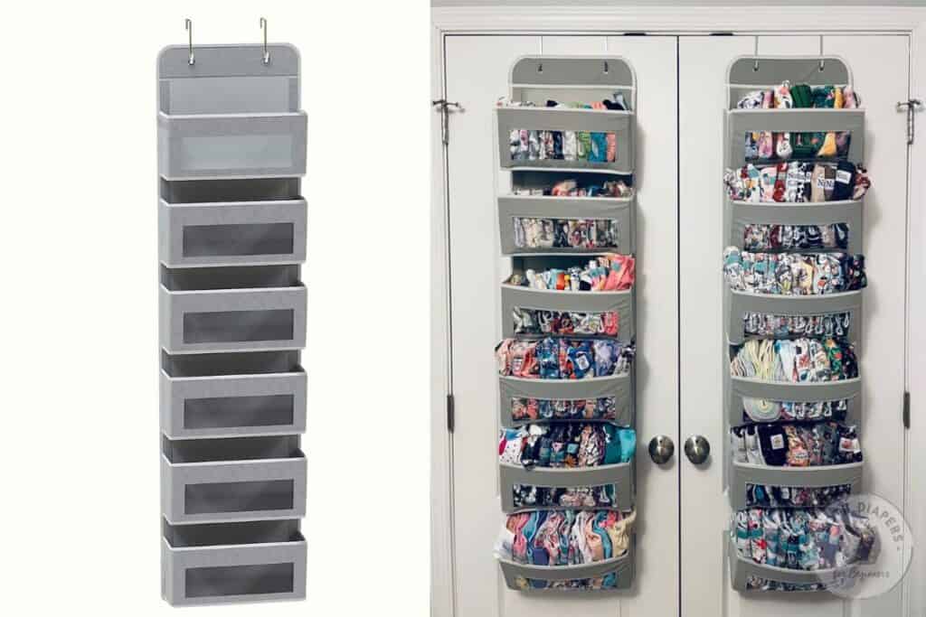 This particular over-the-door organizer with clear pockets is a fan favorite in the Cloth Diapers for Beginners Facebook group.