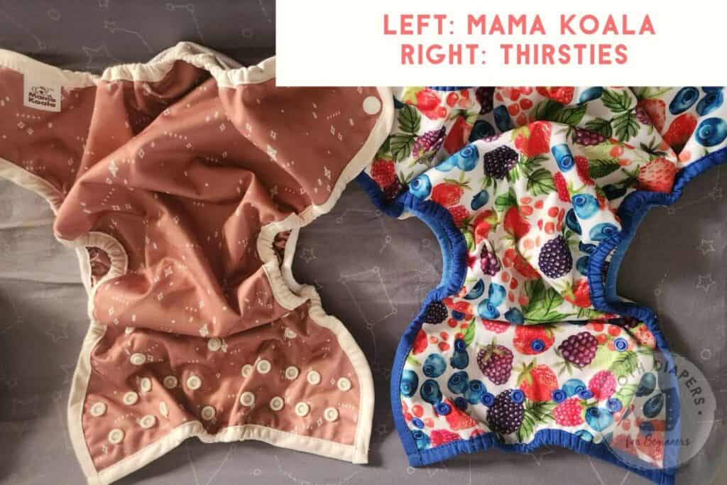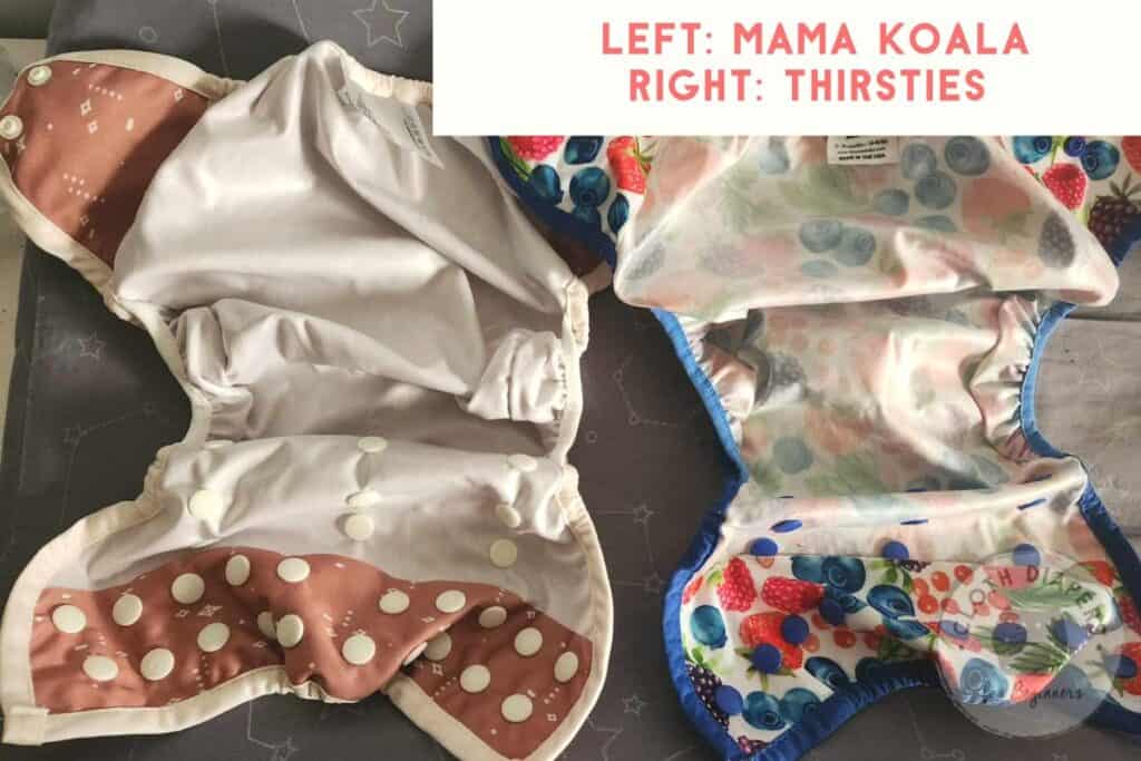 For the materials, Mama Koala’s fabrics were described as feeling a bit more “plastic-y” than the softer Thirsties covers. But even so, the quality stacked up really well, especially given the big price difference.