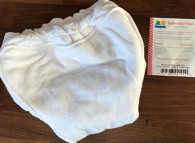 I can’t recommend the Mother ease bedwetting pant (Amazon link) highly enough for anyone dealing with nighttime potty training or overnight bedwetting.