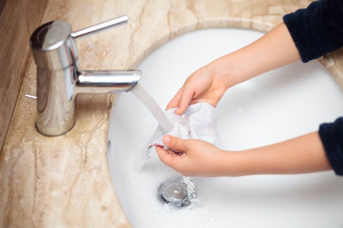 Yup, my first “recipe” is just plain old water. This extreme version of “water wipes” are both simple and effective. Grab a cloth and some from the tap and you’re good to go!