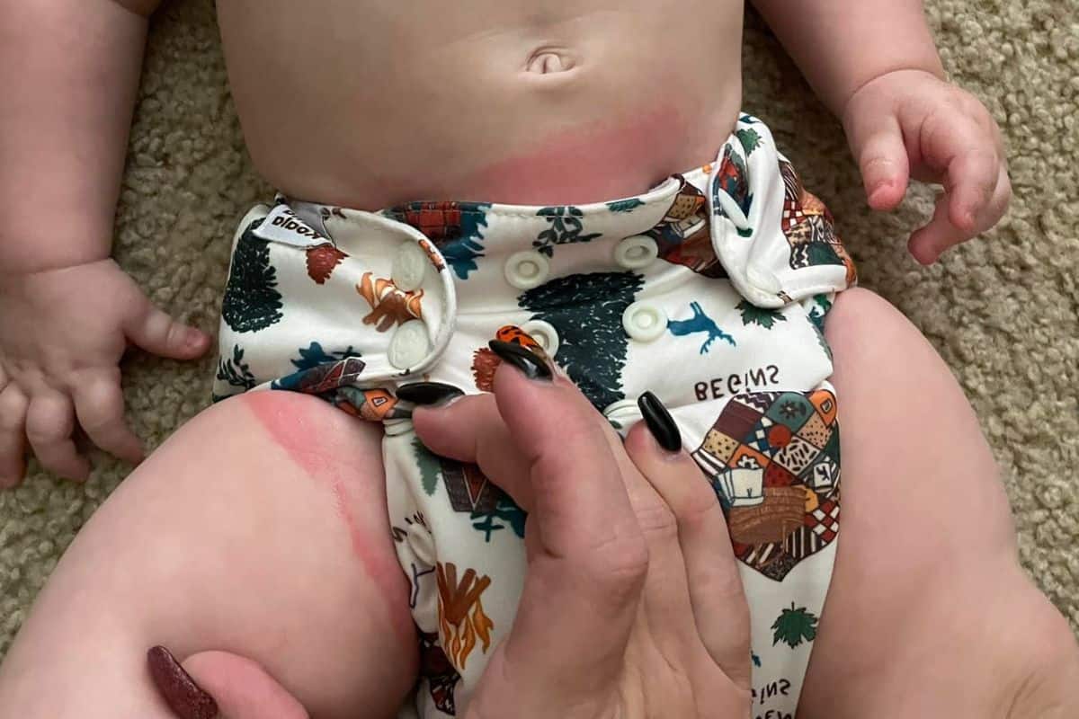 If your cloth nappy is leaving red marks on your baby that look painful, are bright red or purple, have a white film in them, or are causing blistering or welting on the skin there is a problem. This is especially true if they don’t go away within an hour or so of diaper-free time.
