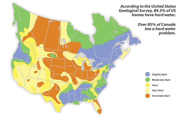 About 85 per cent of North America has hard water, which is water that has high levels of calcium and magnesium minerals. The more calcium and magnesium you have in your water, the harder your water is.
